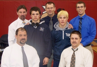 (L-R) Coach Crebs, Garrett Stauffer, Coach Mountz, Noah Townsley,