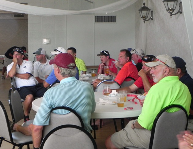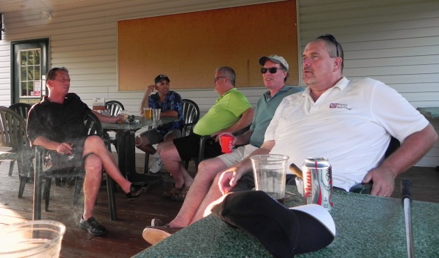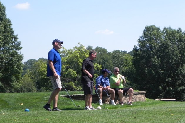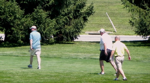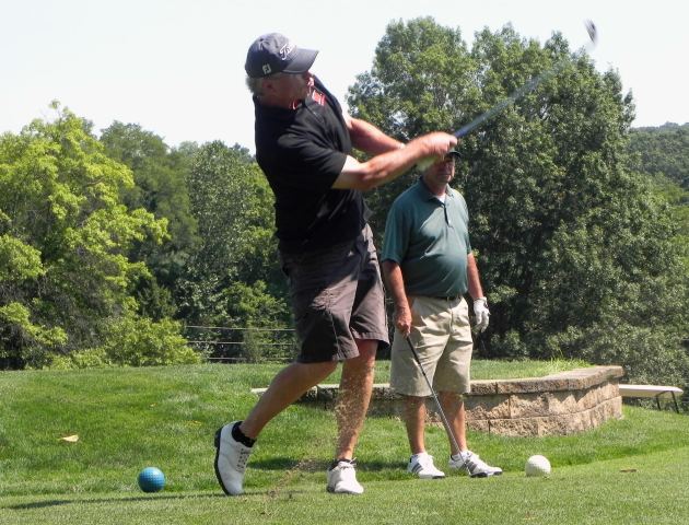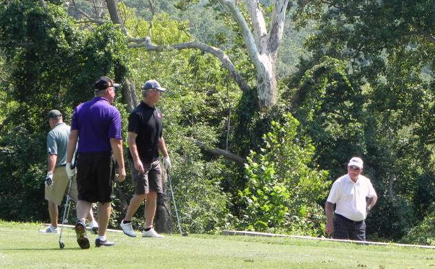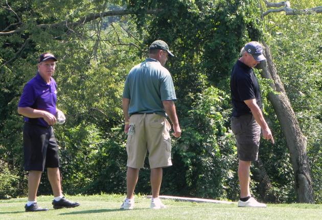 Tallman watch Scott Goodwill's tee shot on CC #14.