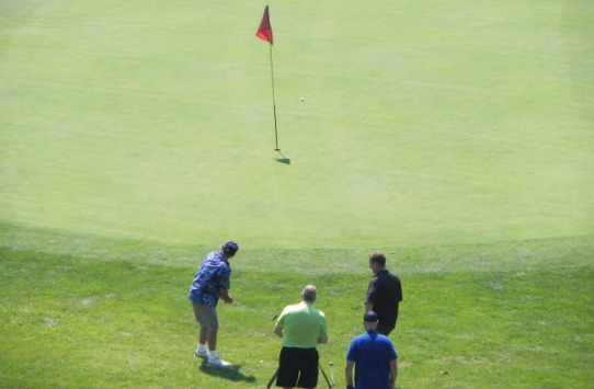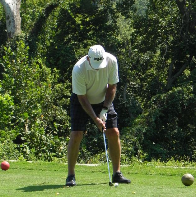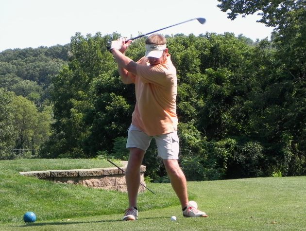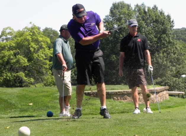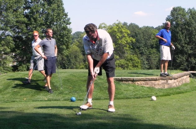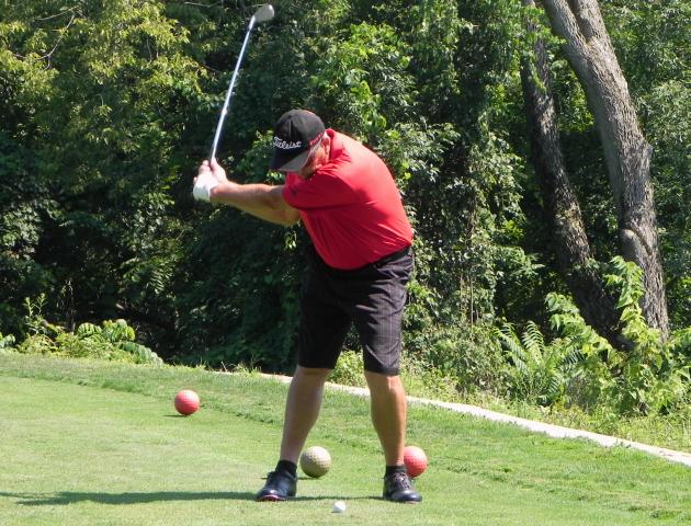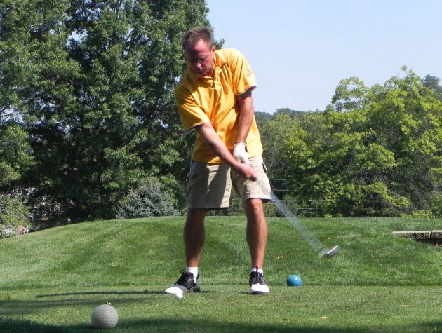 Wrestling Coach, Scott Goodwill, tees off on CC #14.