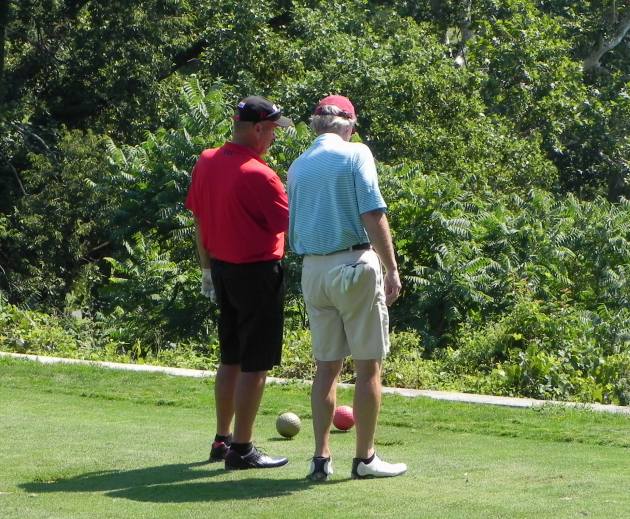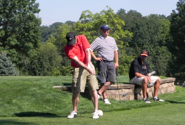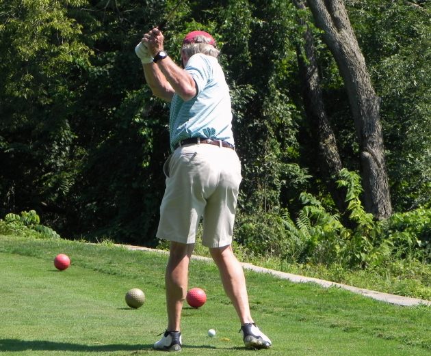 getting ready to swing while Steve Rubesch & Don Lehman chat.