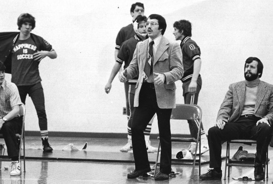 note: Jeff Blatnick is wearing a Dover Wrestling
